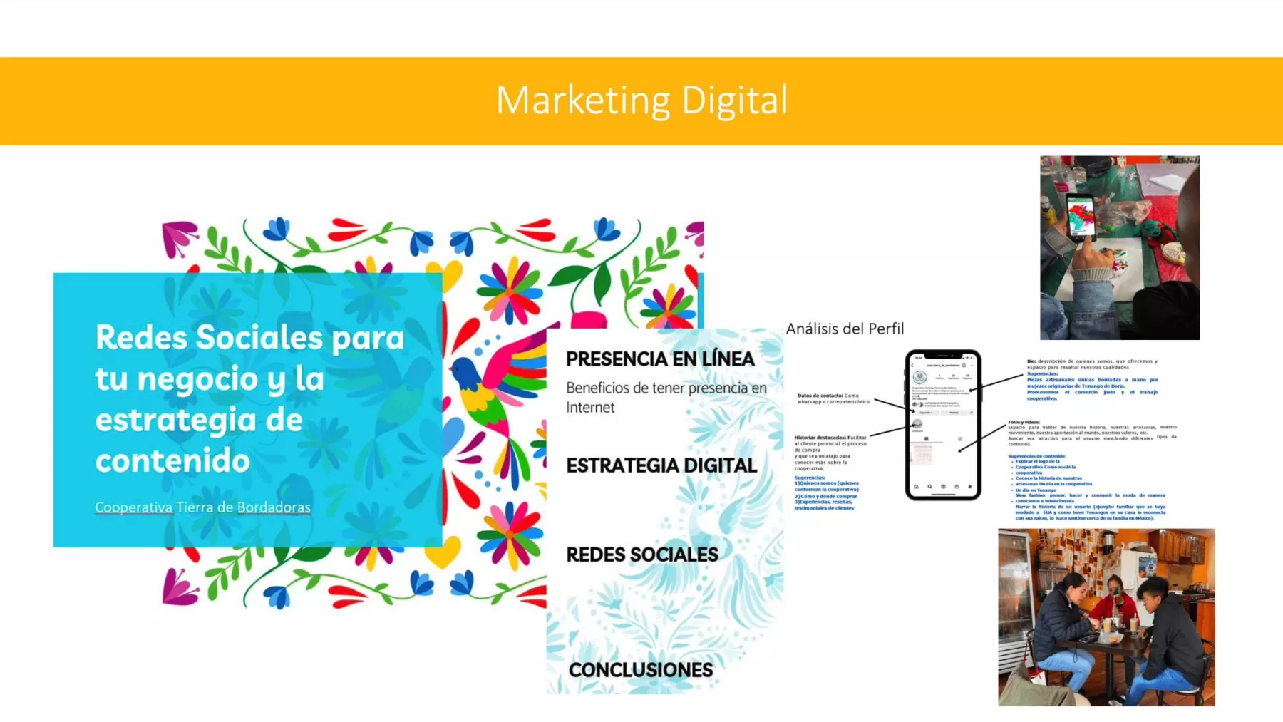 3M’s suggested business plan is tailor-made to be shared with all four of the cooperatives of the Sierra Madre Network. While its contents — SWOT analysis • market analysis • digital marketing plan (with a heavy focus on social media communication and brand consolidation) • operation plan • financial plan — are oriented around one cooperative partner, Tierra de Bordadoras, what is good for one is good for all in the network. The same can be said for 3M’s sharing around the importance of communicating, educating, and raising awareness among textile buyers about the cultural, social, and economic context involved in embroidering. All of this knowledge is of great interest to the 60+ women artisan leaders participating in our 2022-2024 economic solidarity school.